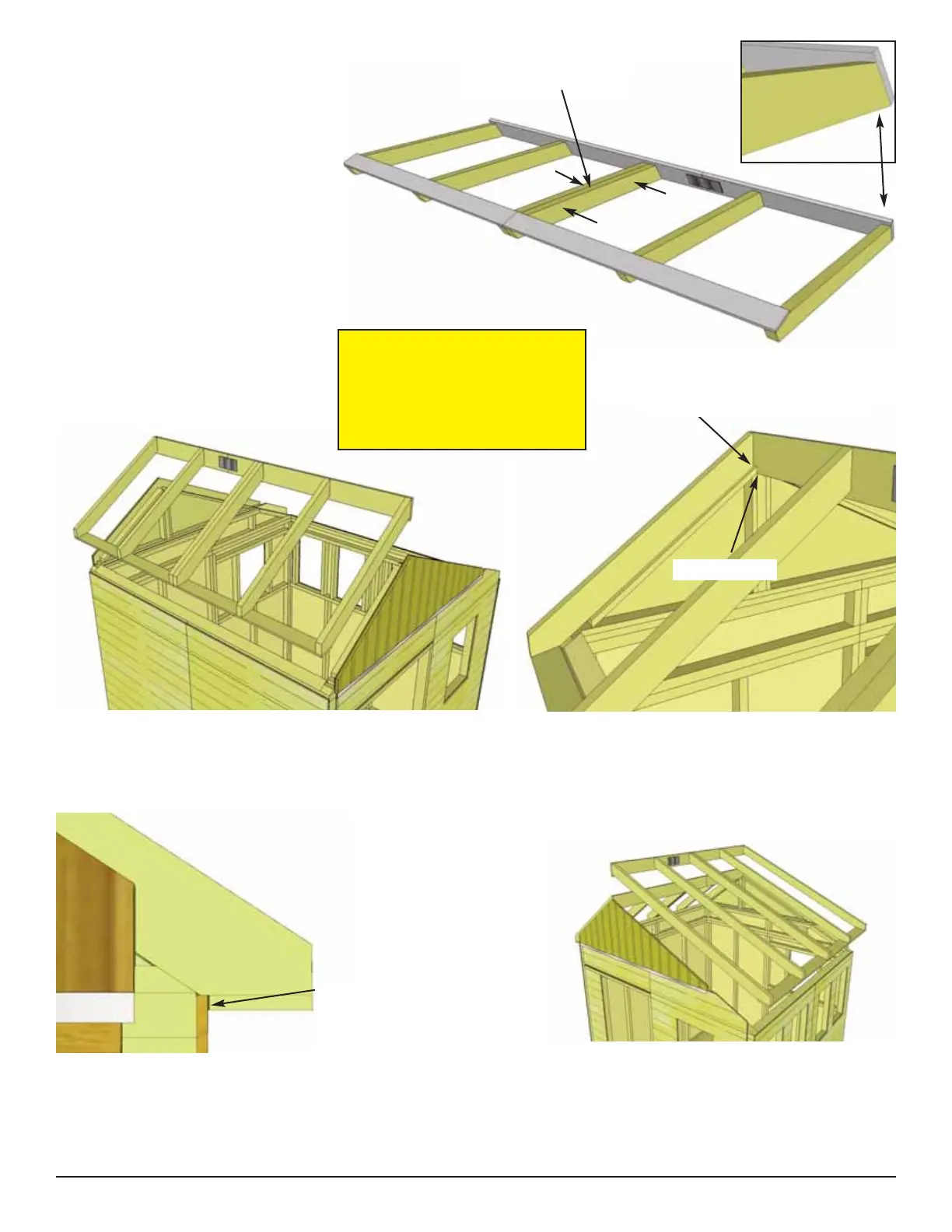 facing down. Slide rafter up on gable framing until bottom of Ridge Board slips into gable notch.