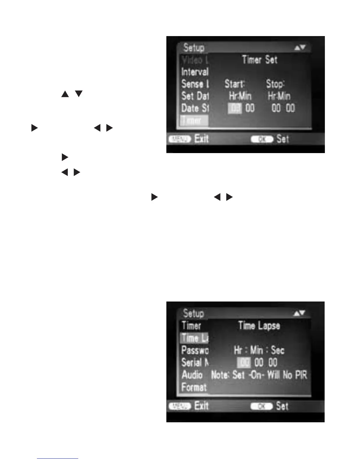 The settings made here apply every day. The camera will not record any images outside of the