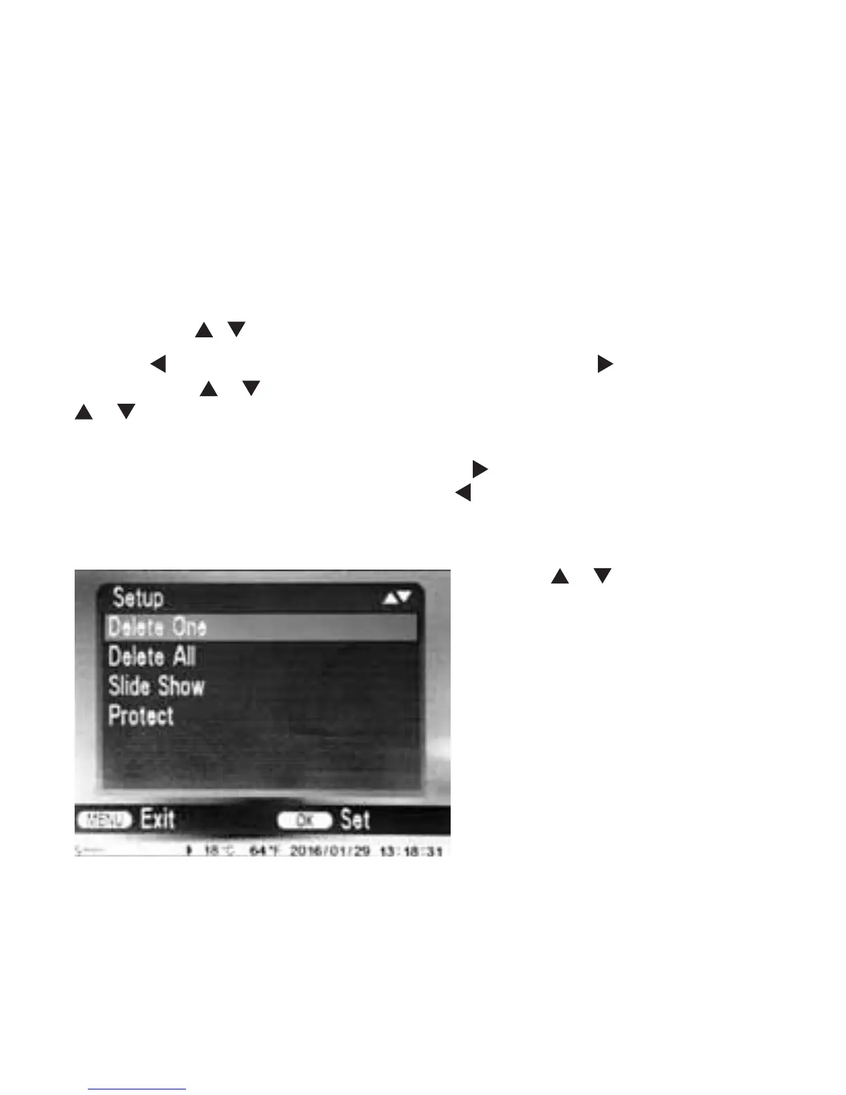 called up this function, move the select bar to “Delete “ and press OK to delete the selected