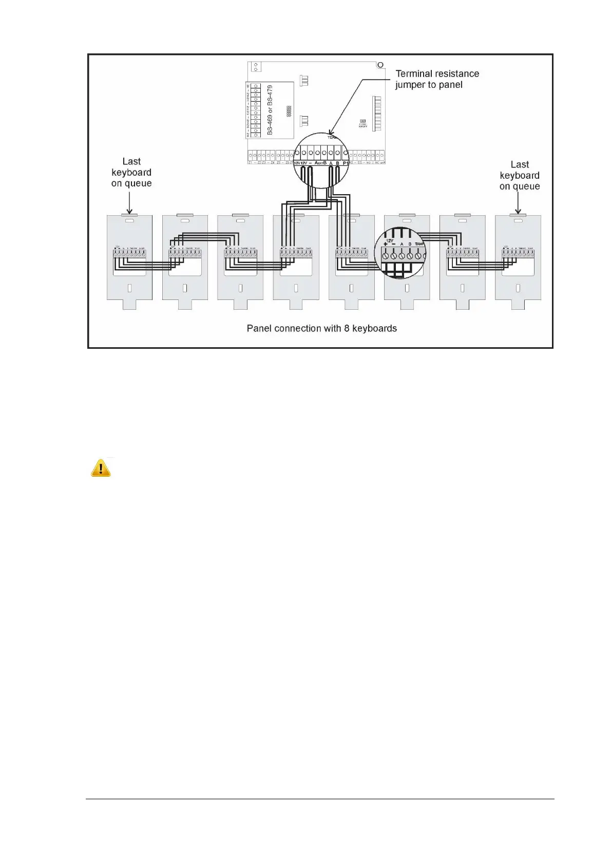 Connecting 8 keyboards to the panel. The cables must be connected in such a way that will permit the