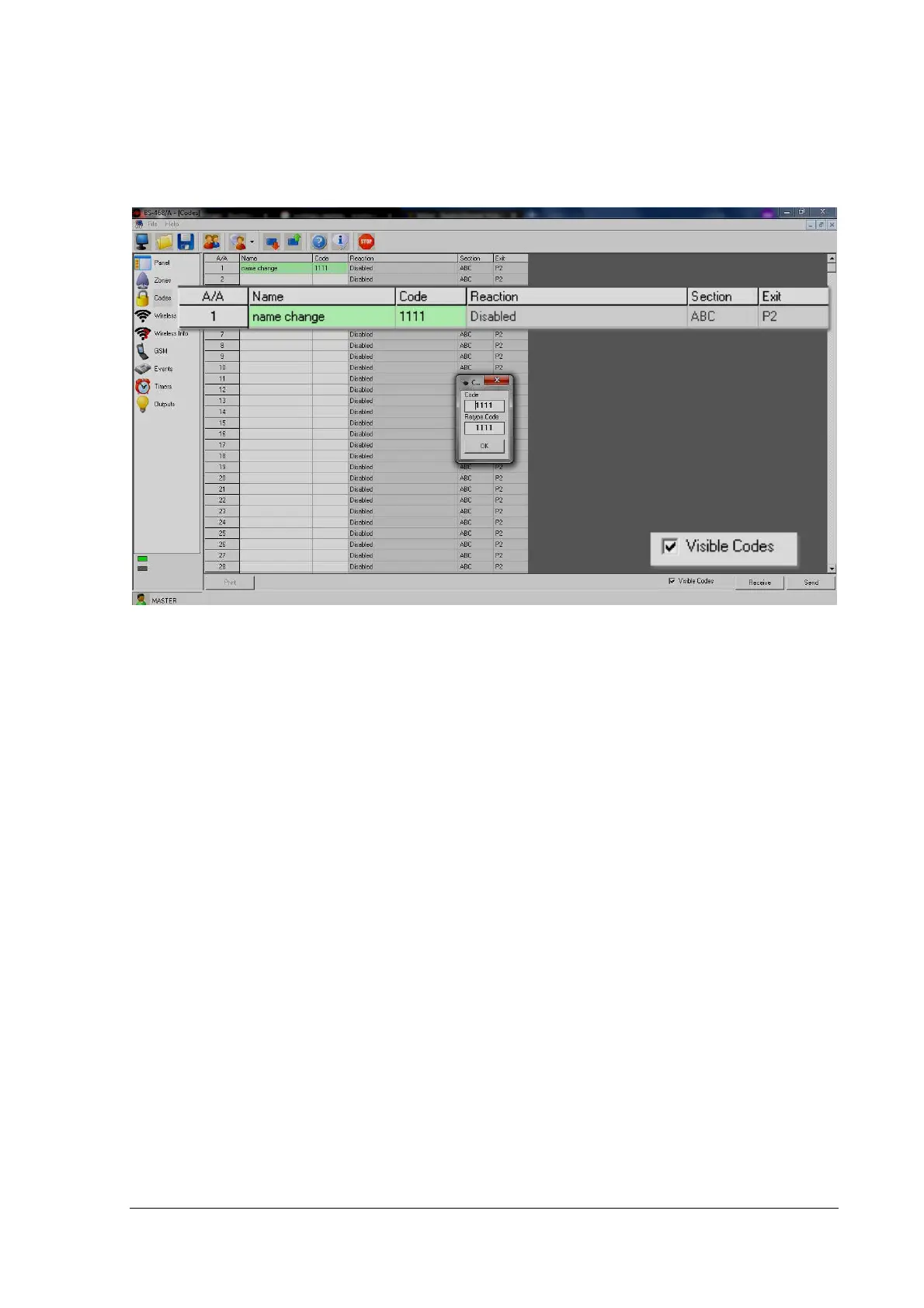 The above picture shows the option "Visible Codes". With this option, the user can choose whether or