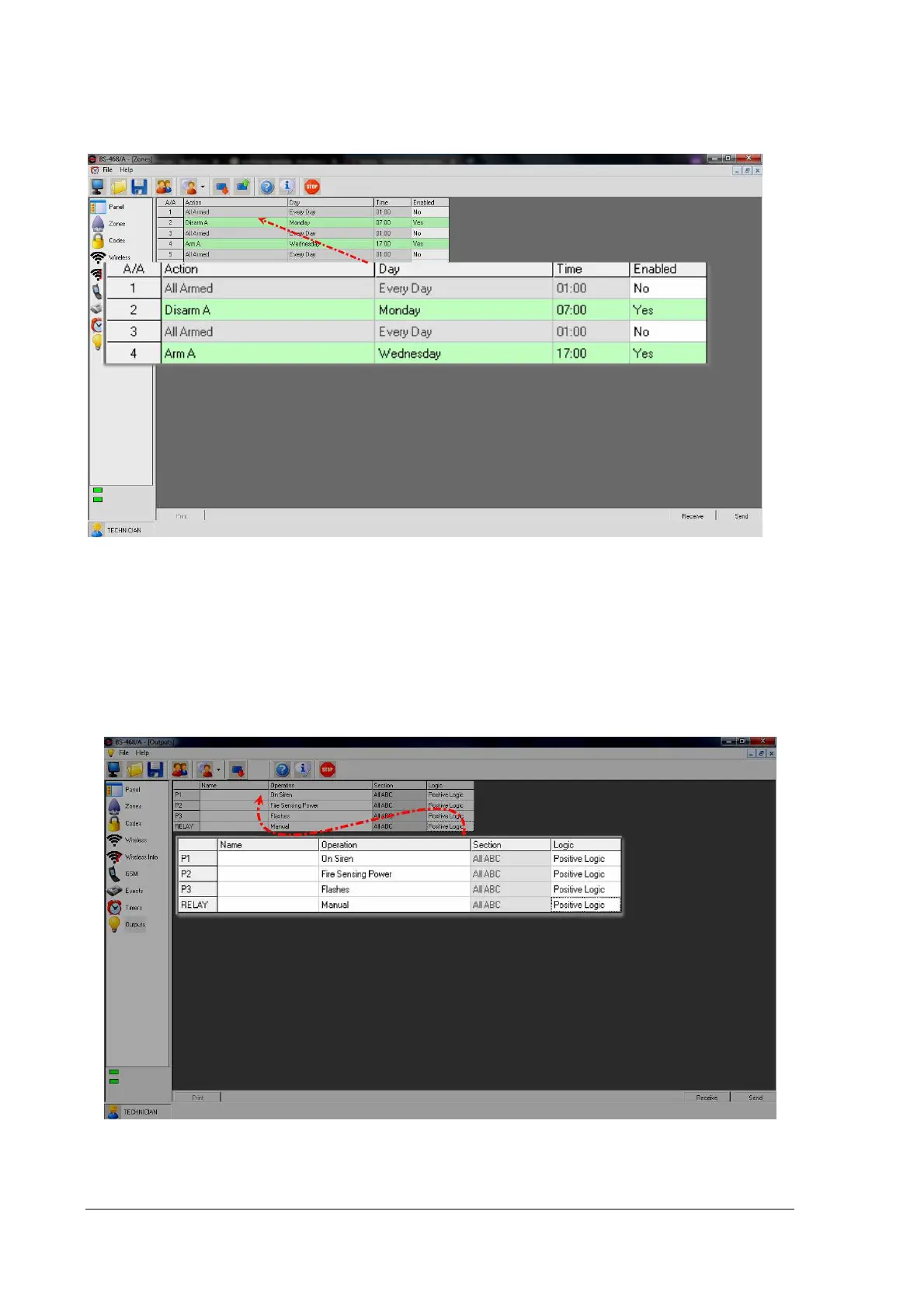 Through "Timers" window we can program the panel to arm and disarm at specific times.