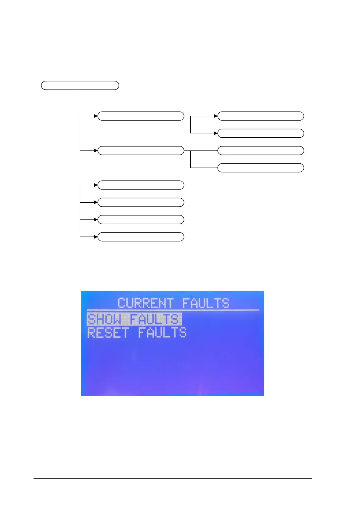 The first option “CURRENT FAULTS” appears only if there are faults in the panel. By pressing
