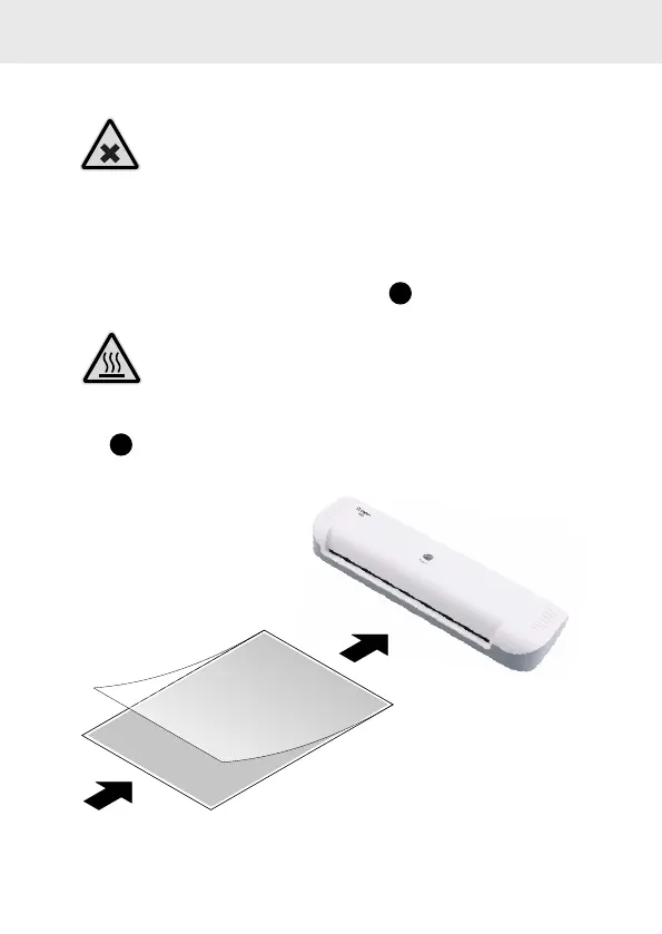 VORSICHT! Verbrennungsgefahr durch heiße Laminierfolie.