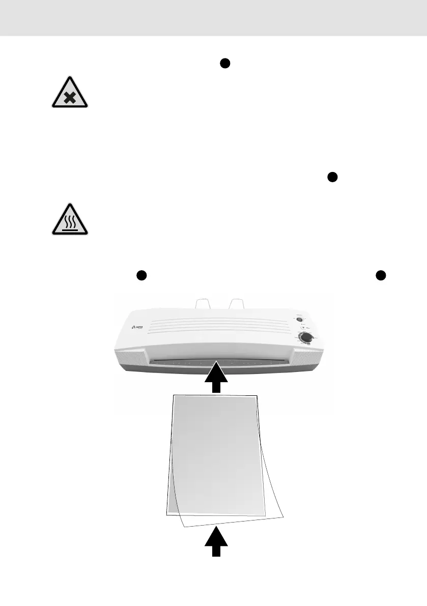 ren sehr heiß. Entnehmen Sie die austretende Laminierfolie nur