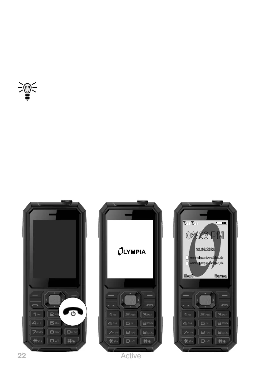 3 As soon as the display shows the name of your network oper-