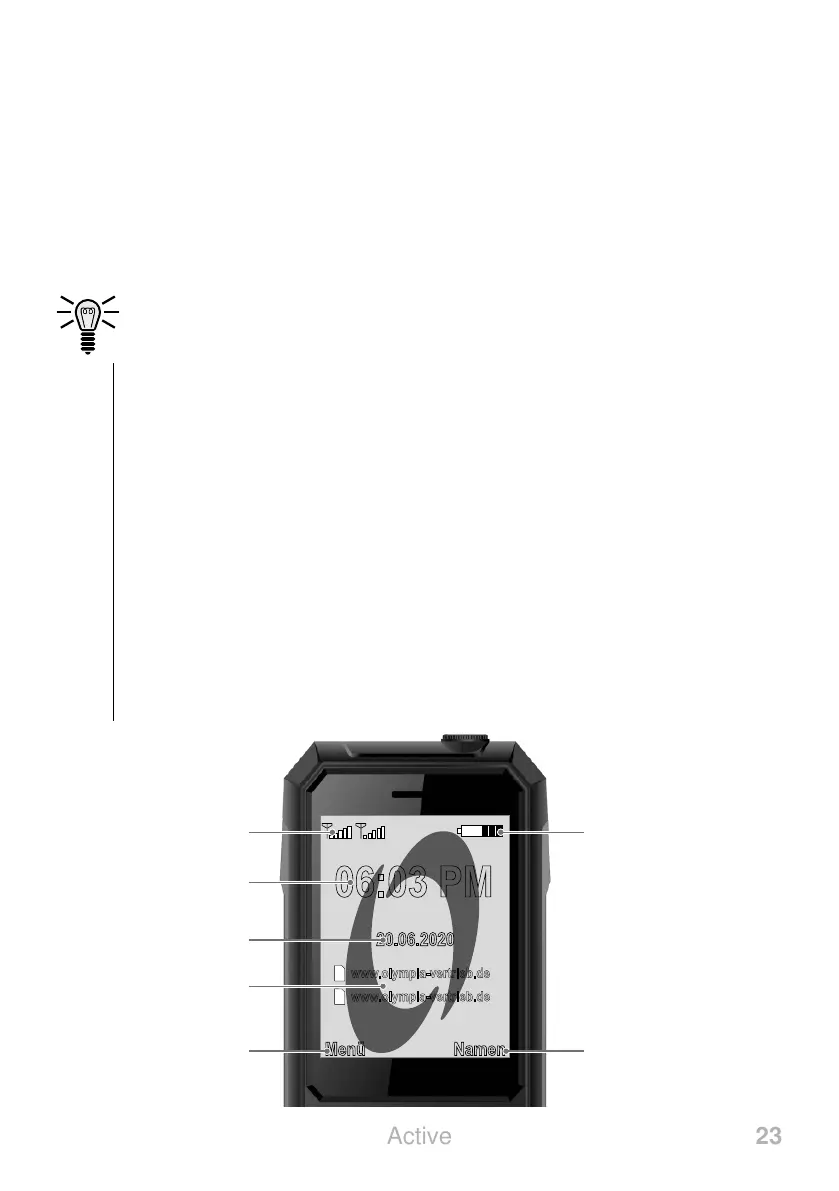 mobile phone is switched on. The start screen shows you useful