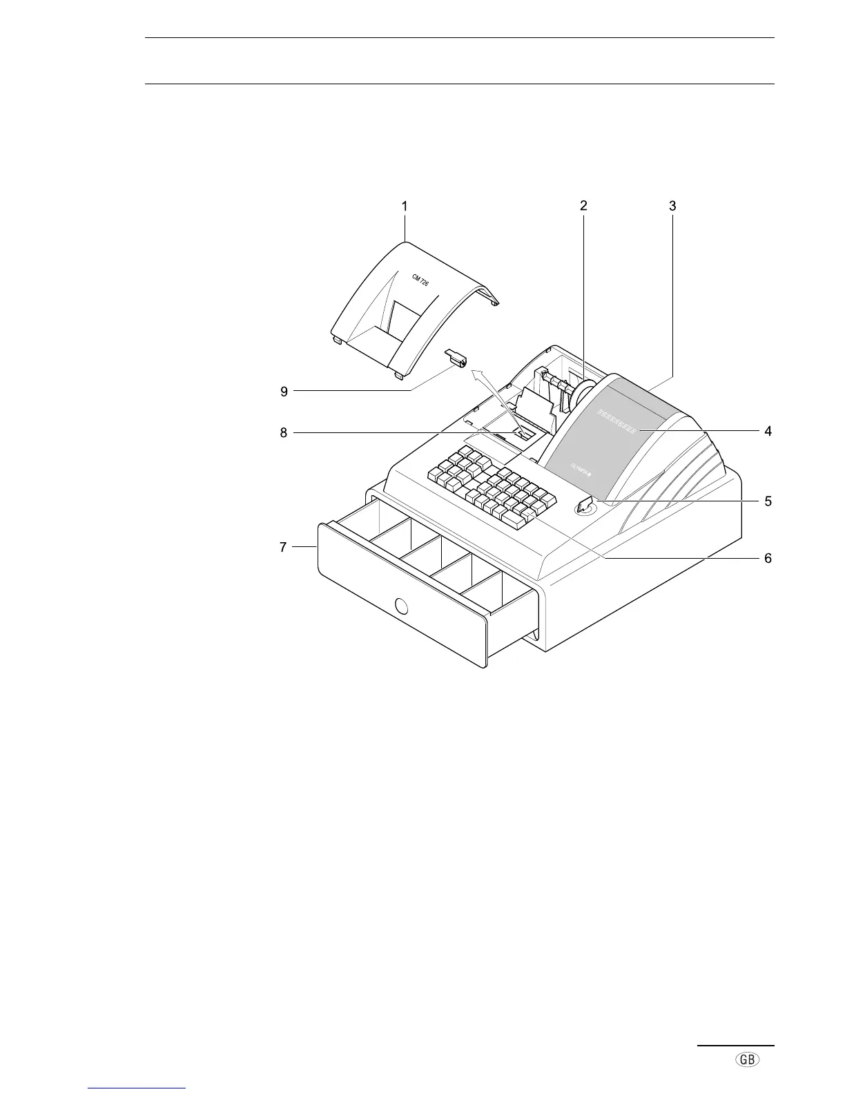 3. Customer display (CM 726 only) 8. Printer