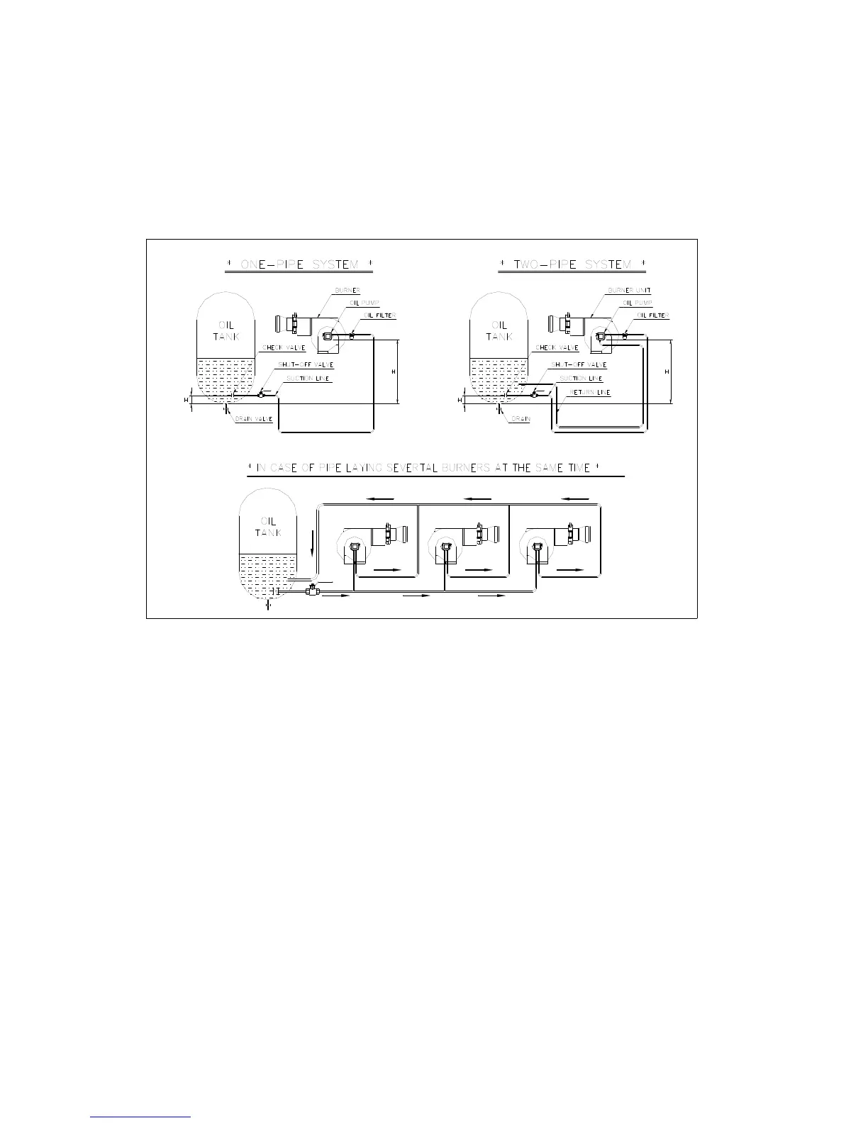 ② when oil tank is below burner, "H" its height must be less then 2.4m.