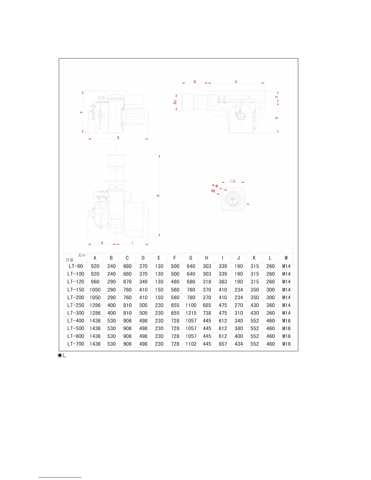 ② LT-80,100,150,200,250,300,400,500,600,700 DIMENSION