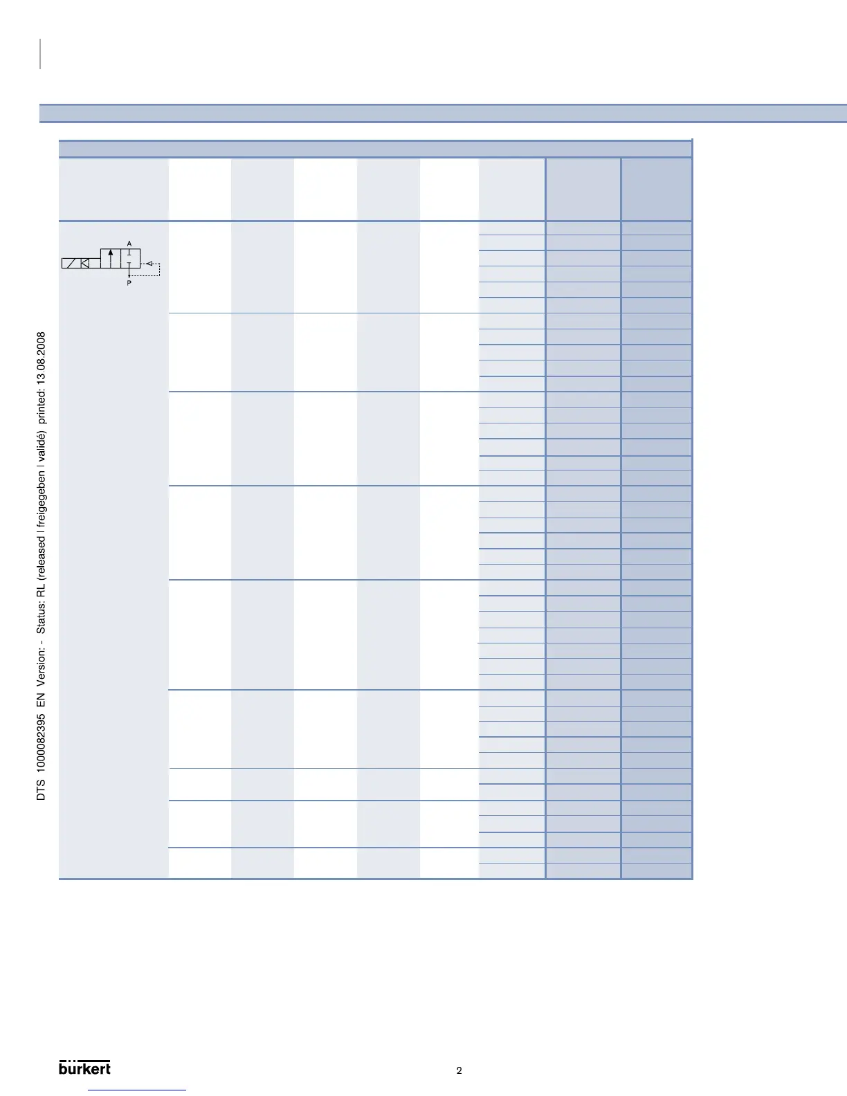 Ordering chart for valves