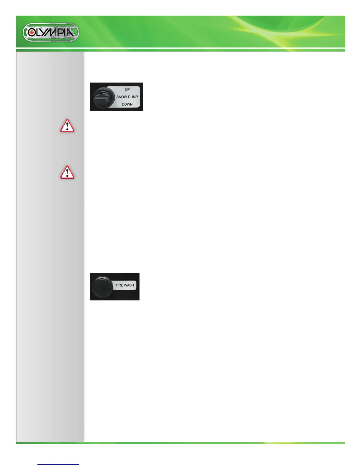 Before opening the snow dump tank make sure there is sucient