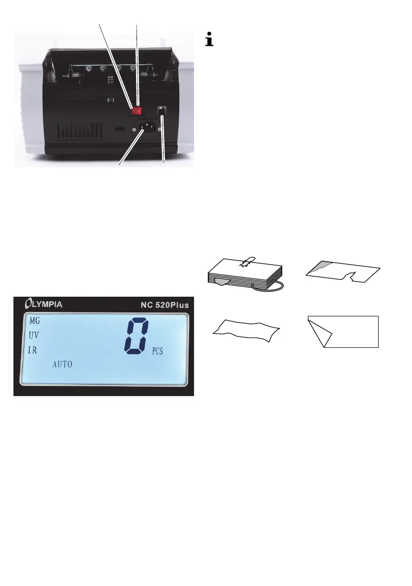 Æ Legen Sie keine beschädigten Banknoten