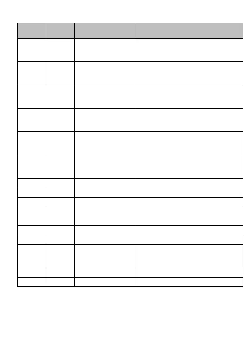 Die nachfolgende Tabelle enthält für die Speicherstellen die Werkseinstellungen und die