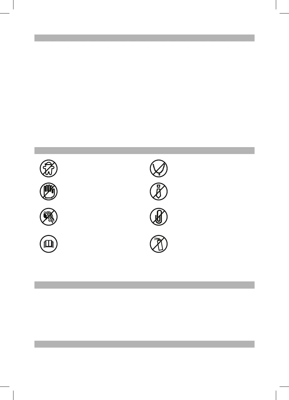 Verletzungen verursachen! Falls doch ein Gegenstand (Ärmel, Krawatte etc.) un-