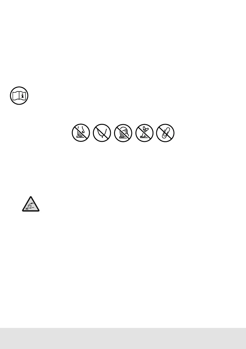 corpos estranhos antes de triturar o material. Manter peças de roupa largas, gravatas, joalharia,