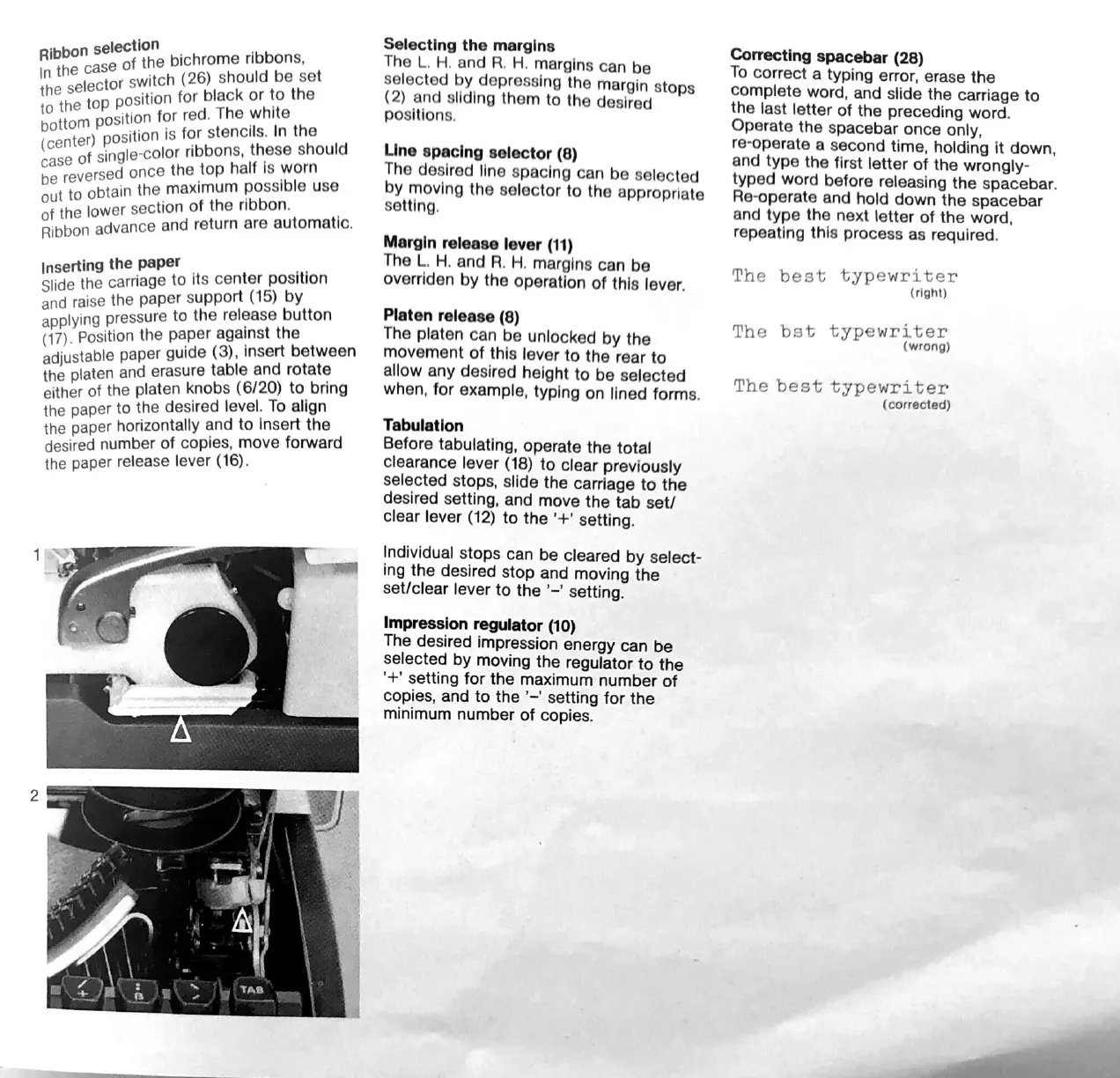 Olympia SM 9 - Typewriter Functions and Adjustments; Ribbon Selection and Management; Paper Insertion Procedure; Margin Setting and Release