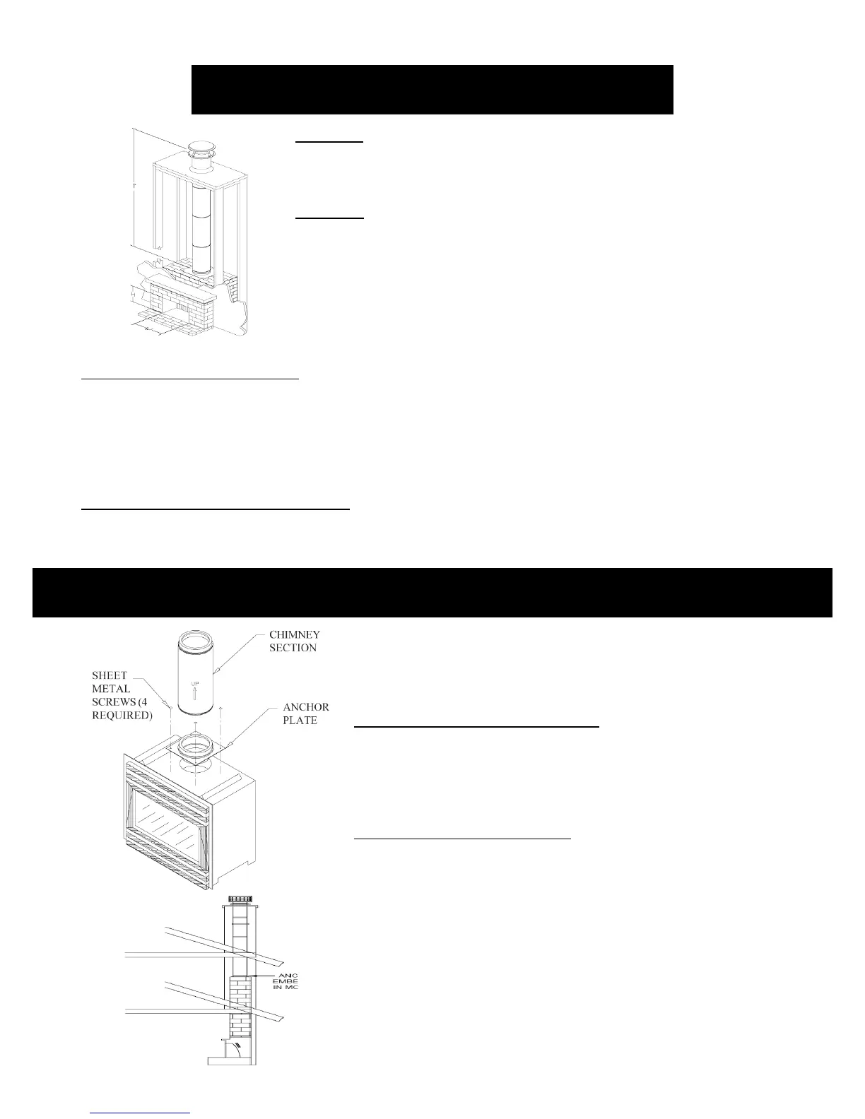 Step 3 – Assemble the Chimney: Secure the first chimney section to the fireplace anchor plate with a