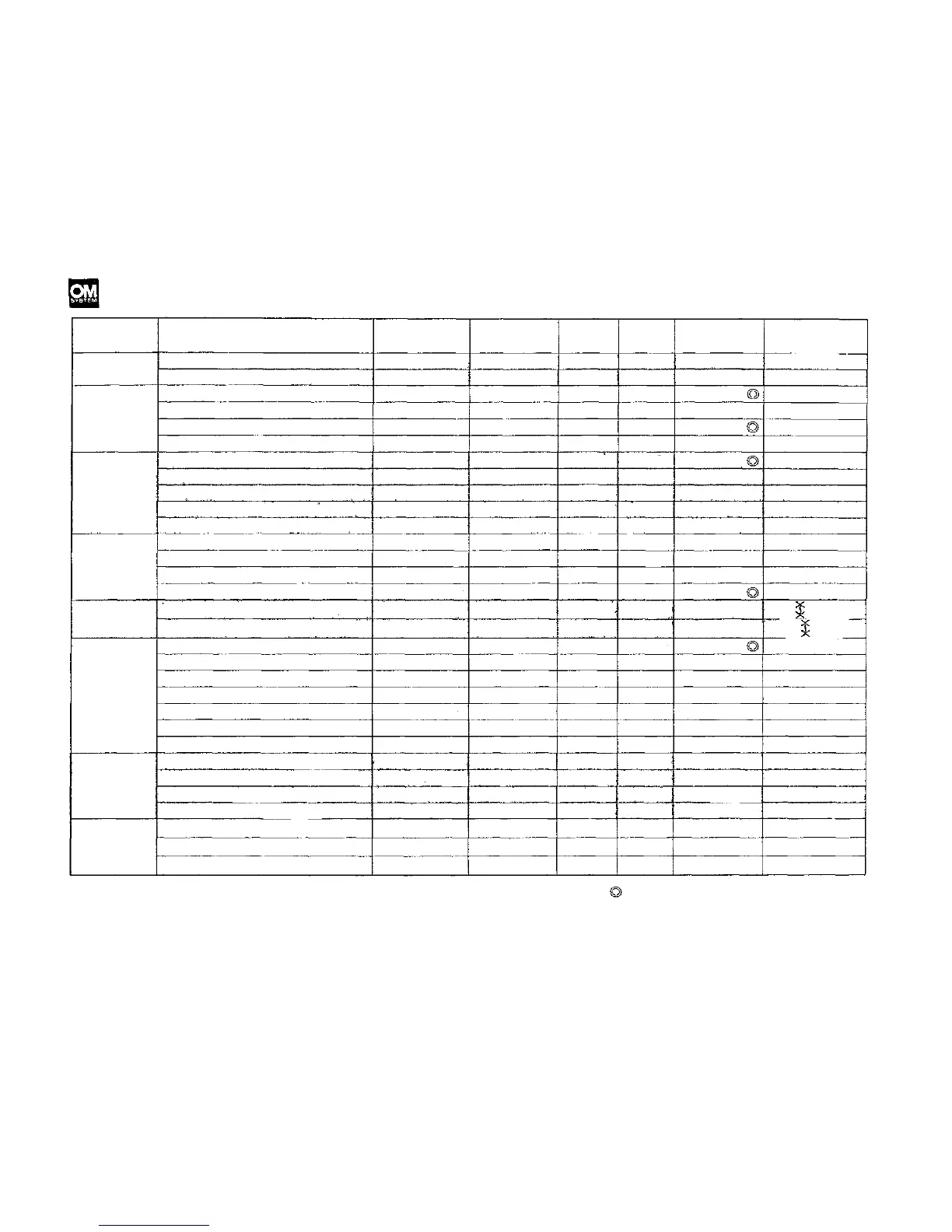 Olympus 1 - Table of Interchangeable Lenses