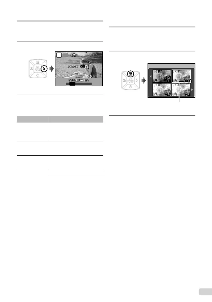Можно выбирать функции вспышки для