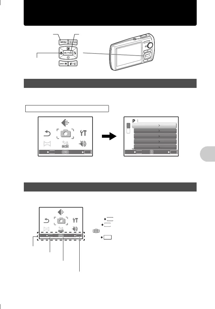 • When [CAMERA MENU], [PLAYBACK MENU], [EDIT], [ERASE], or [SETUP] is selected,