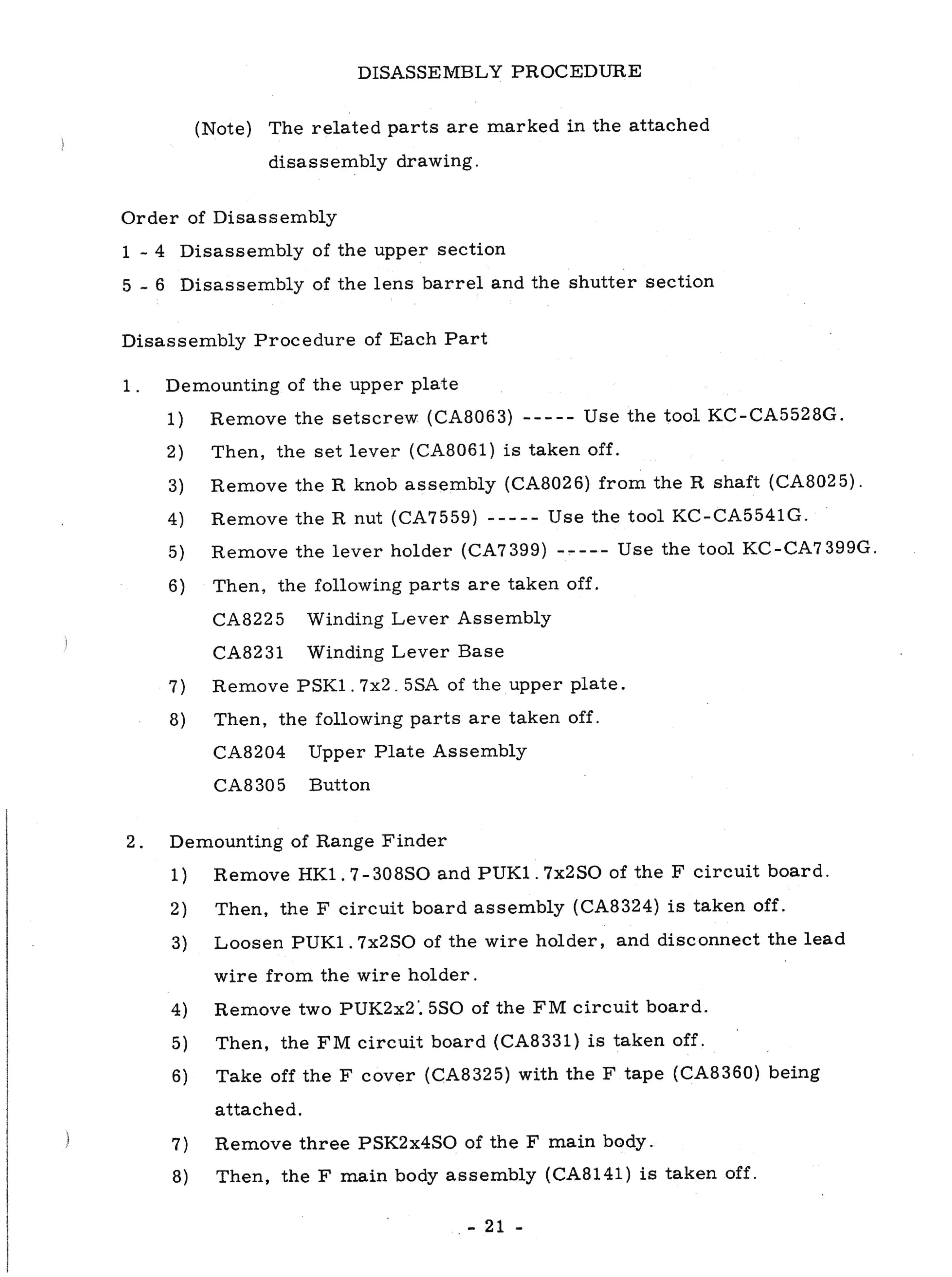 Olympus 35 DC - Olympus 35 DC Disassembly Procedure; Upper Plate and Range Finder Removal