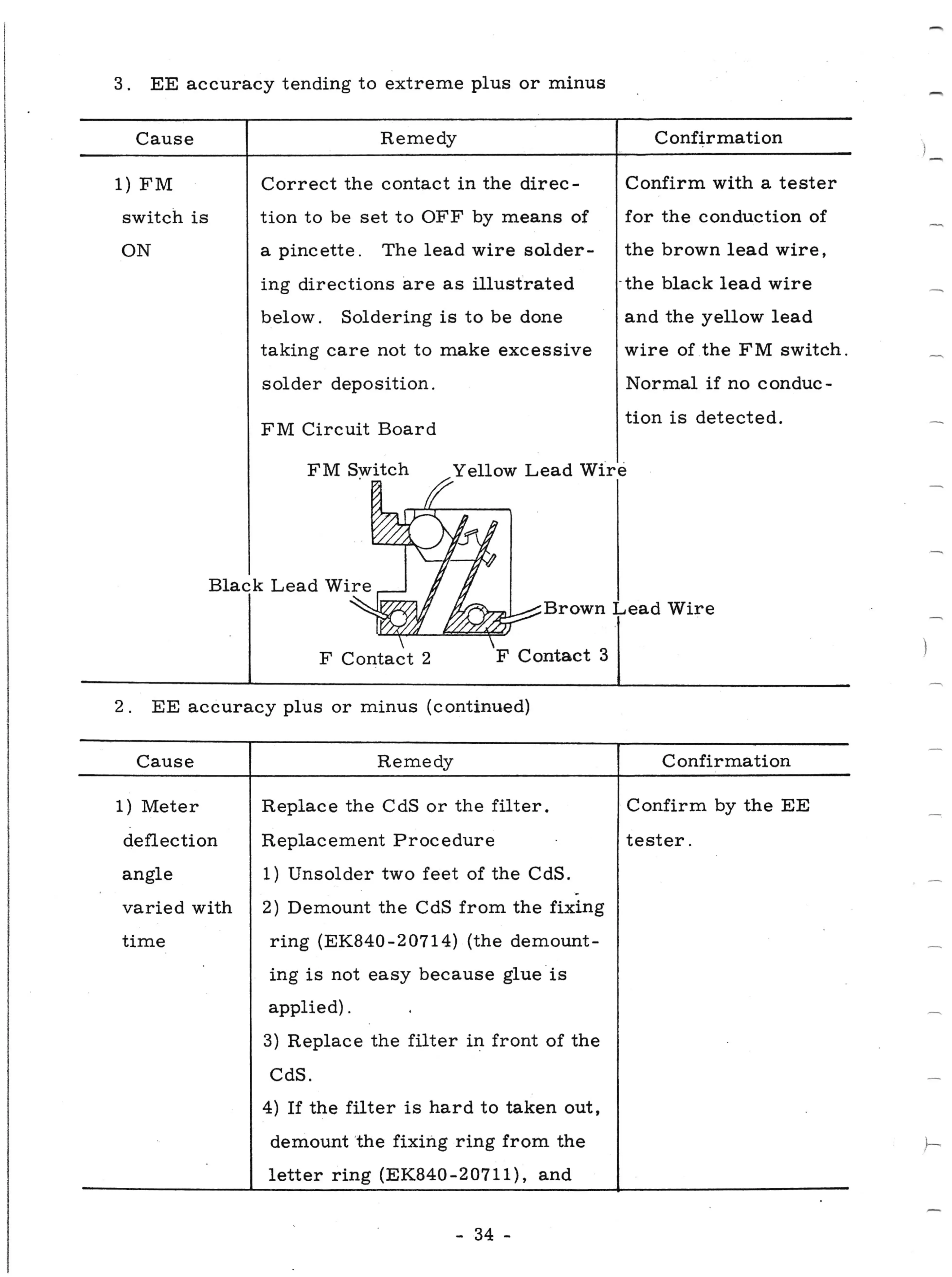 Olympus 35 DC - EE Accuracy Tending to Extreme Plus or Minus; EE Accuracy Plus or Minus (Continued)