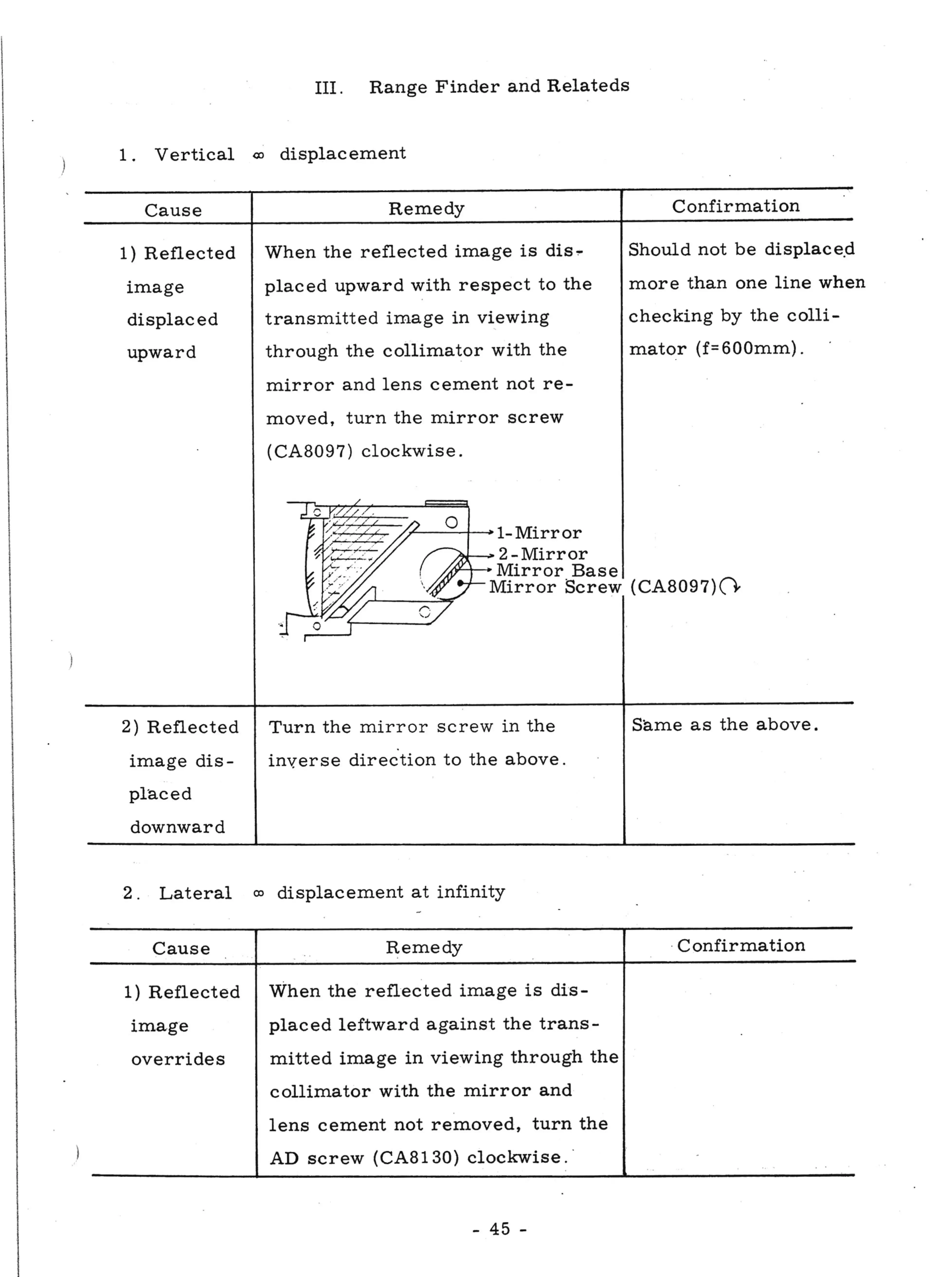 Olympus 35 DC - Vertical Displacement; Lateral Displacement at Infinity