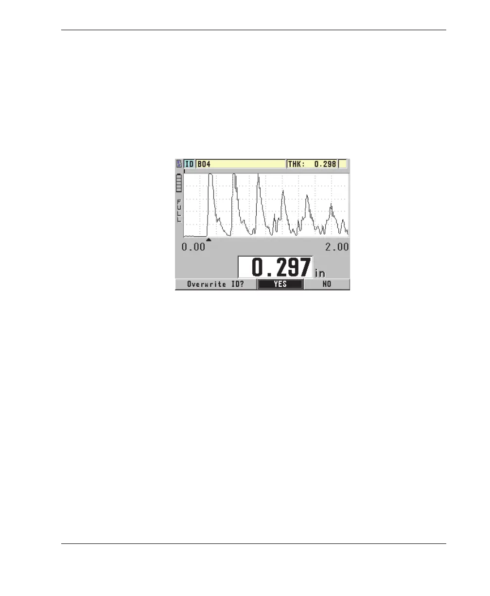 thickness readings/waveforms will be overwritten. Select YES to replace the previous