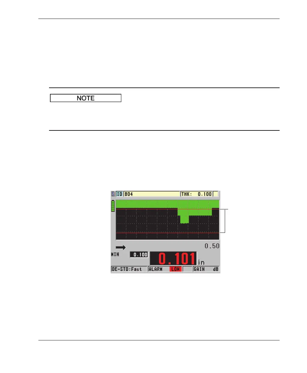 B-scan alarm mode, lines are shown in the B-scan grid when the reference values