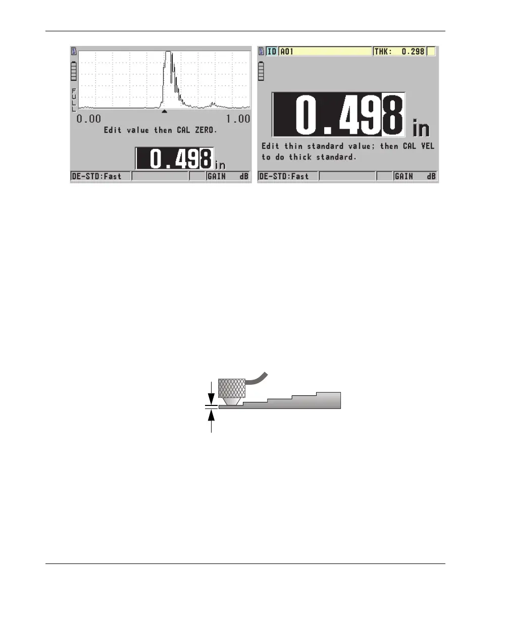 b) Couple the transducer to the thin part of the test block (see Figure 5-6 on
