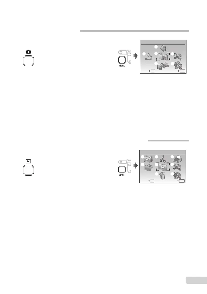 Menús para las funciones de reproducción, edición e impresión