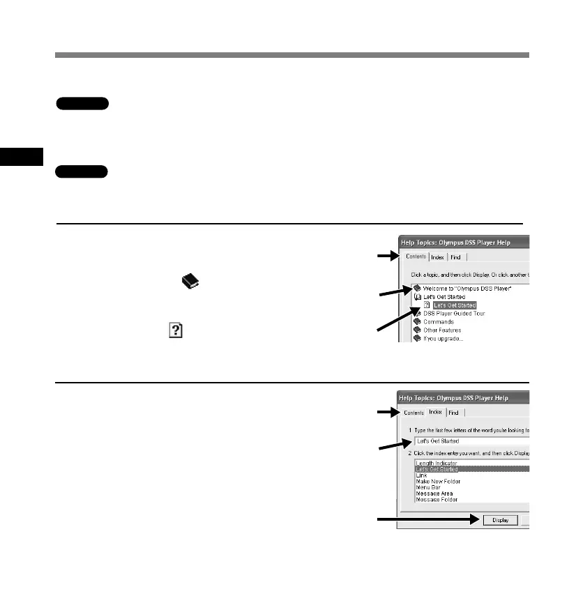 • Click the [start] button, select [All Programs], then [Olympus DSS Player], then click [Help].