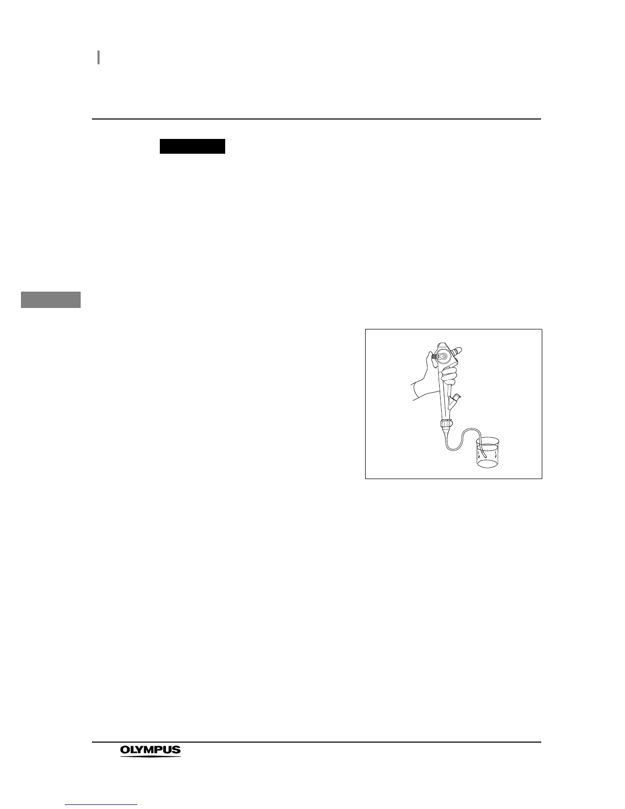 6 Remove the distal end of the insertion section from the water. Depress the suction