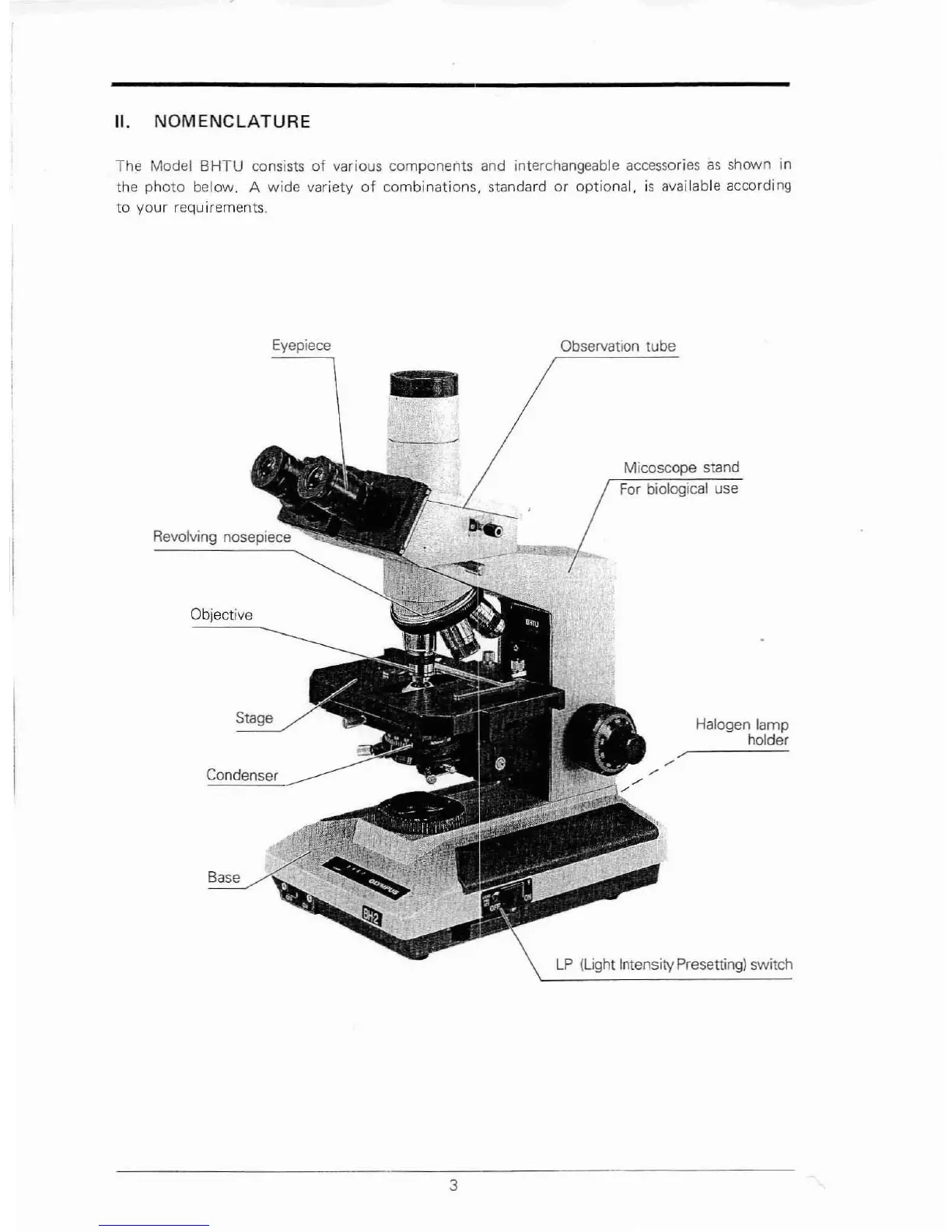 Olympus BHTU - Nomenclature