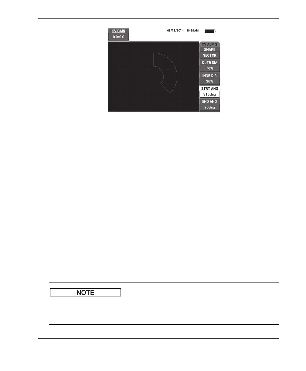 • OUTR DIA (outer diameter): controls the outer diameter of the SECTOR alarm