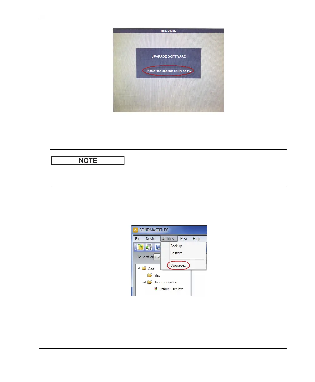 5. On the BondMaster PC Utilities menu, select Upgrade (see Figure 7-7 on