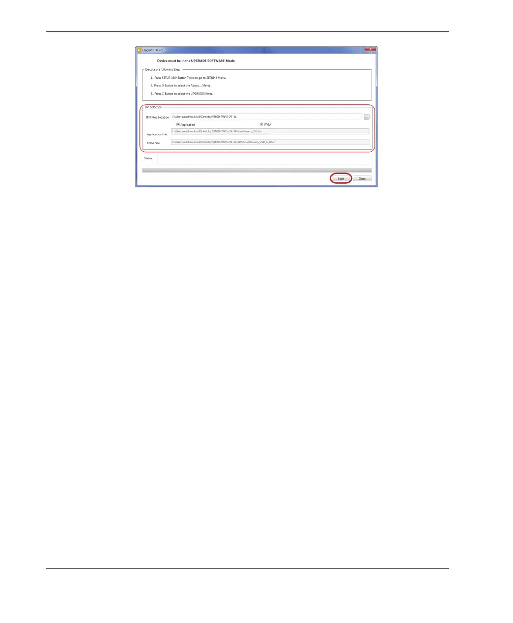 6. Under Bin Selection in the Upgrade Device dialog box, choose the location of the
