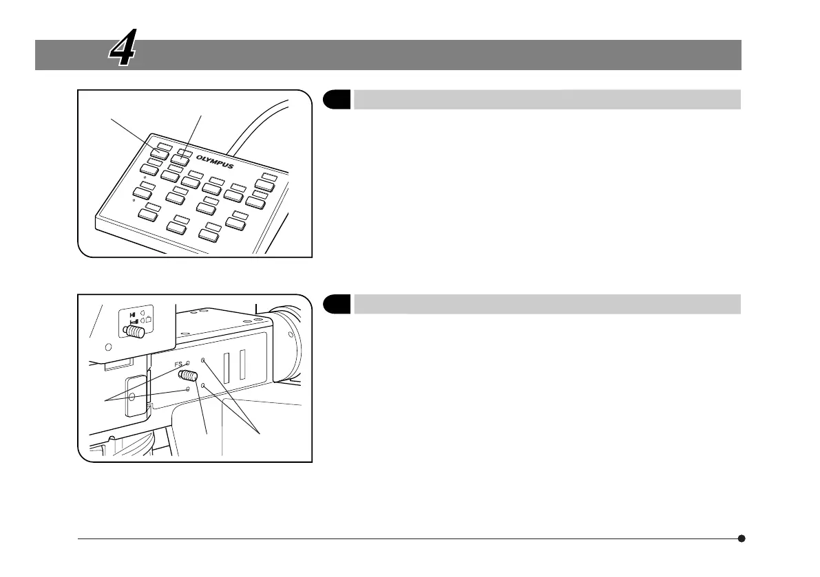 5. While pushing in the FS knob ³, open the field iris diaphragm until the