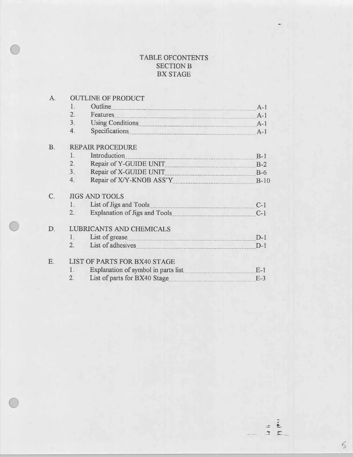 Olympus bx40 - Section B BX40 Stage; Outline of Product; Repair of Y-Guide Unit; Repair of X-Guide Unit