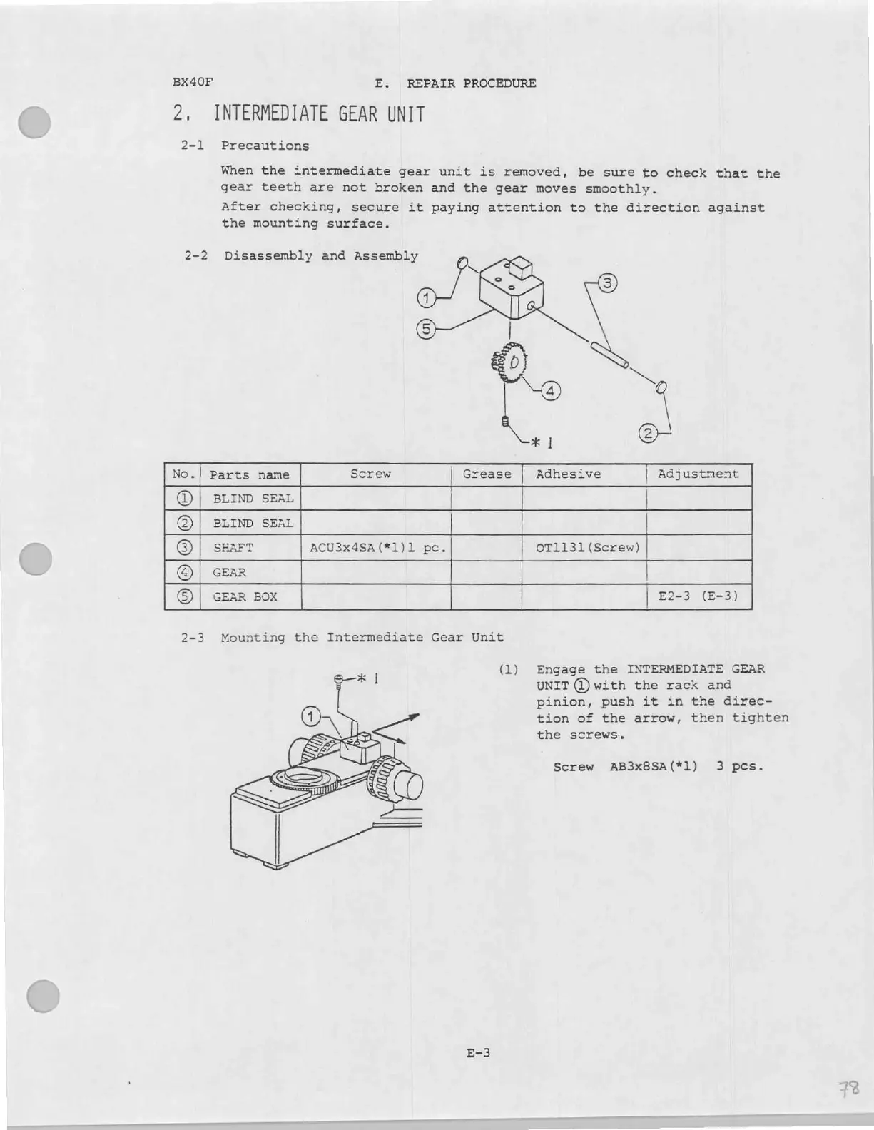 Olympus bx40 - Intermediate Gear Unit