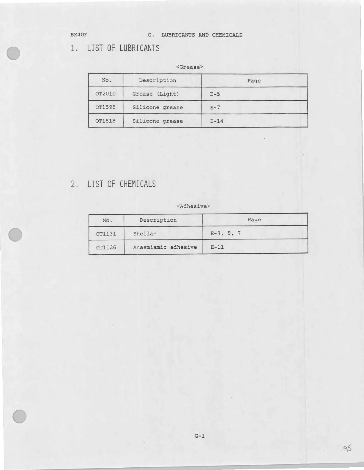 Olympus bx40 - Lubricants and Chemicals; List of Lubricants; List of Chemicals