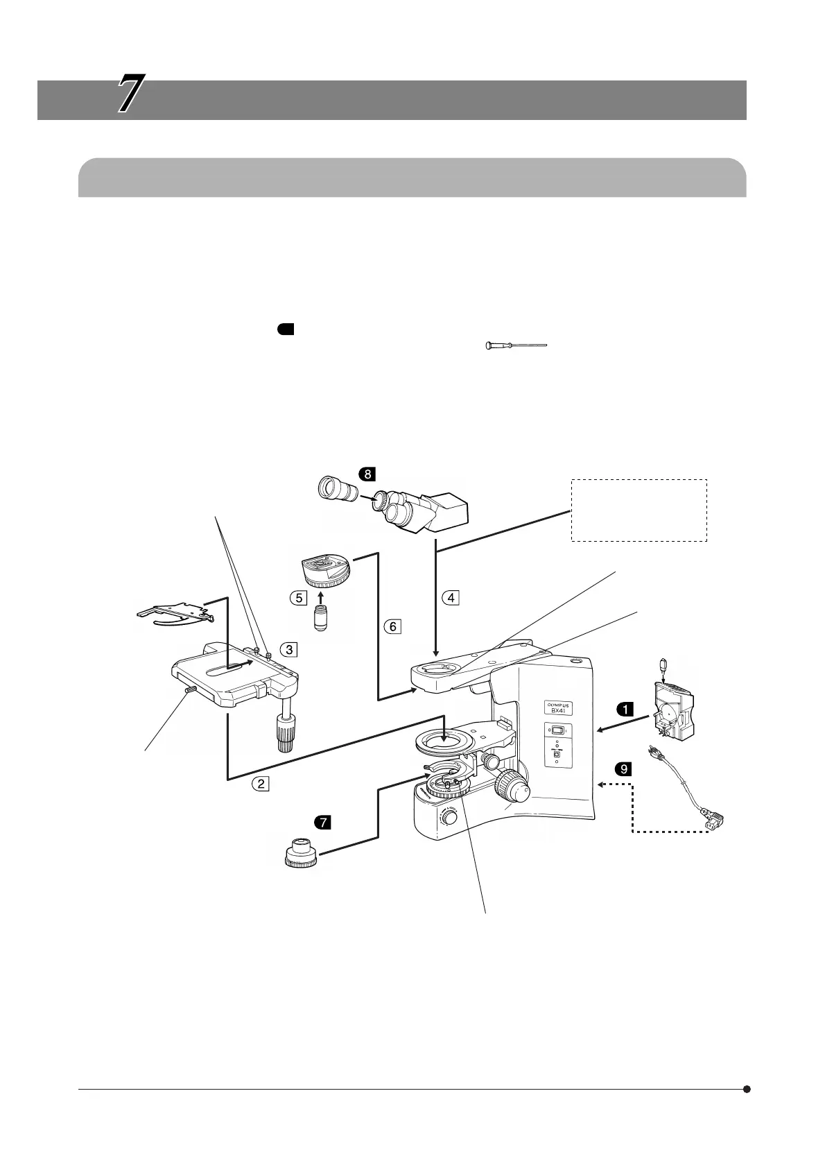 }All assembly operations are possible by using the Allen screwdriver ( ) provided with the microscope.
