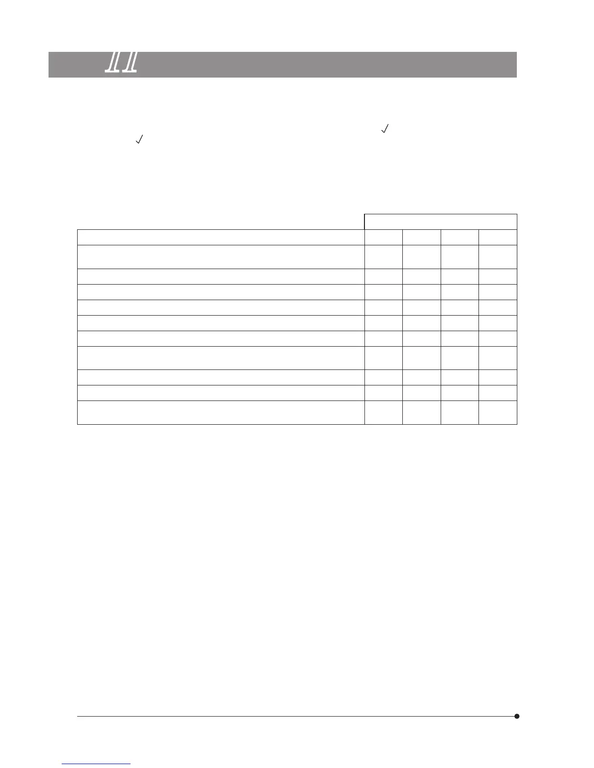 { The table below identified the check items to be observed. Put (X) if not applicable or (