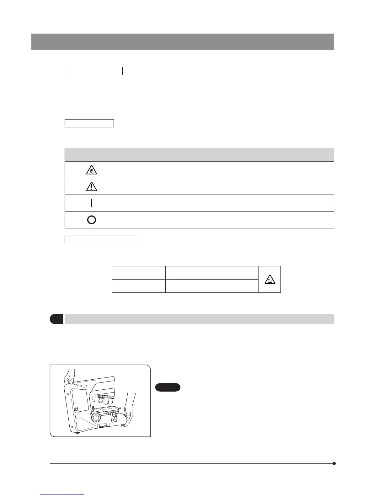 The following symbols are found on the microscope. Study the meaning of the symbols and always use the equipment