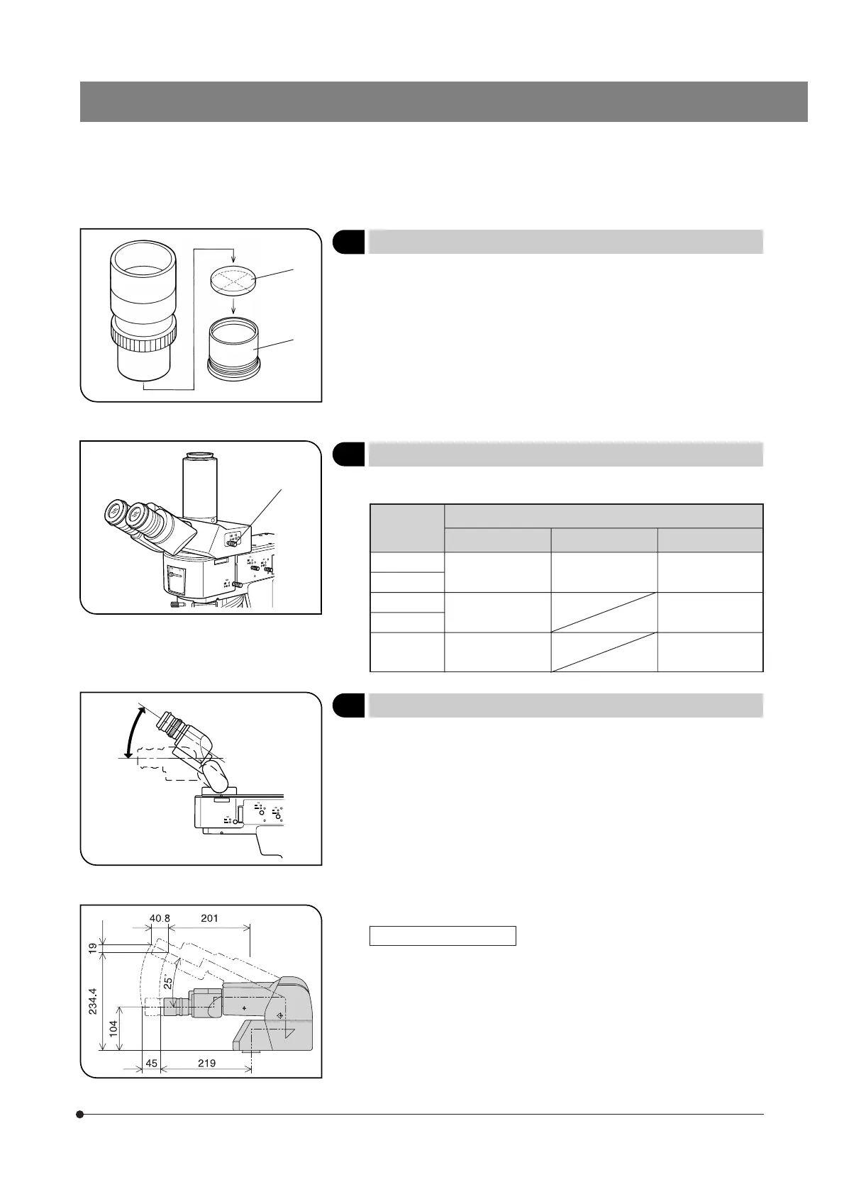 }Adjust the height and tilt angle of the observation tube to obtain the most