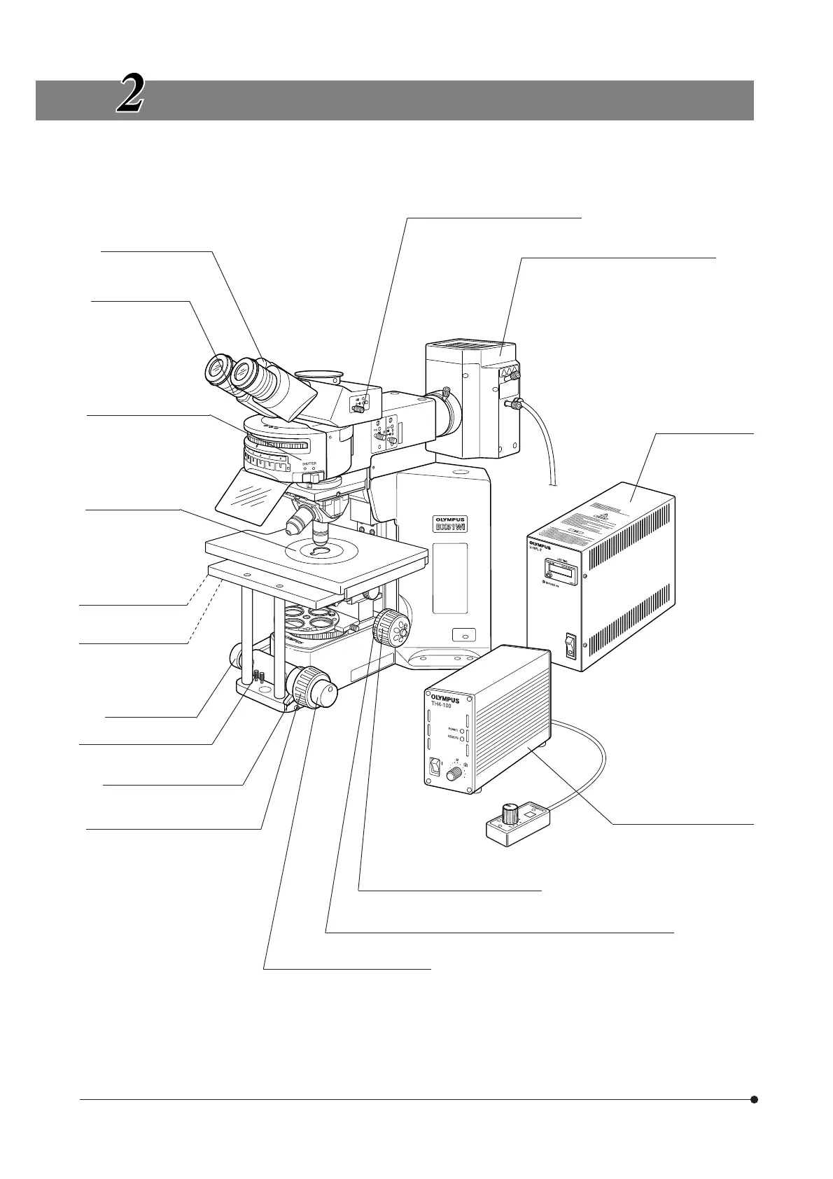 }The descriptions on the filter turret, revolving nosepiece, condenser, etc. will be given in the subsequent pages.