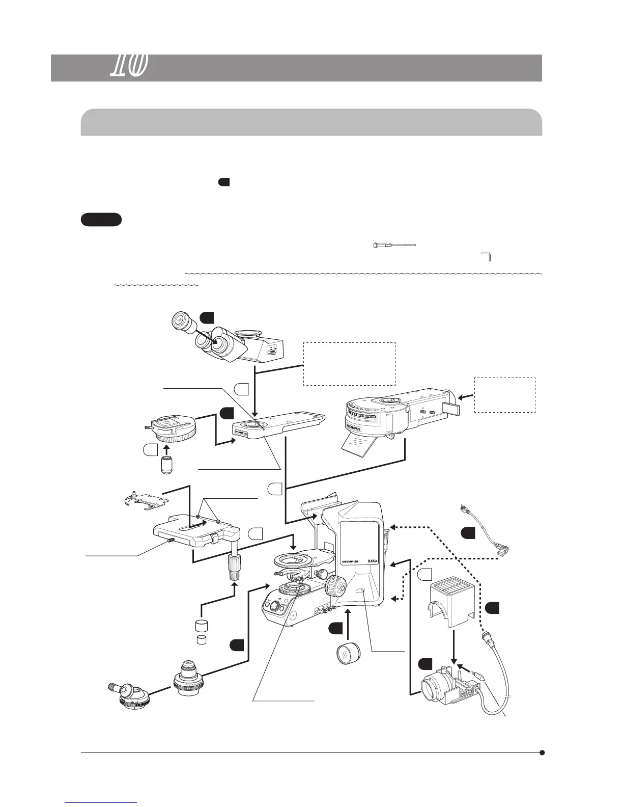 the internal screws (to ensure the performance, we recommend that you have your Olympus representative assemble