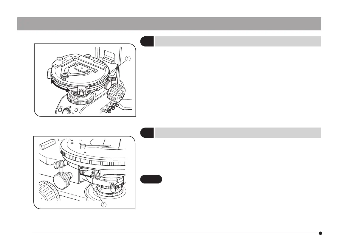 When the stage rotation clamping knob @ is loosened, the stage can be