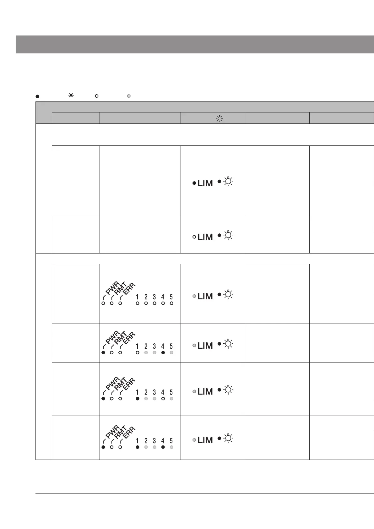 : Turns ON. : Blinks. :Turns OFF. : Varies depending on state.